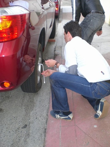 Wir hatten nen Platten im Reifen. Tja, jetzt mussten wir erst Mal Reifen wechseln und da ich nicht ohne Ersatzreifen in ein paar Tagen durch’s Death Valley fahren will haben wir erst Mal bei unserem Autovermieter angerufen. Der hat uns dann gesagt, dass wir das Auto am Besten einfach austauschen. – JA, so bringt man den Tag auch rum.